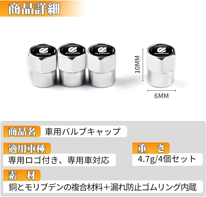 アルファード 適用 タイヤバルブキャップ ブローオフバルブ 車 漏気防止 防塵 ALPHARD 20系 30系 40系 対応 エアバルブキャップ カー 防錆 腐食防止 ミニキャブ タイヤバルブ ドレスアップ 質感(アルファード 適用,シルバー・4個)