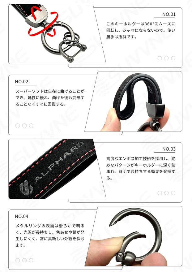 [SUVVNE] スヴニ 新型アルファード 40系 キーホルダー 車 ALPHARD 40系 (2023年6月~現行) 車用キーホルダー スエード フック ダブル 車ロゴキーチェーン 車種専用 キーチェーン 男女兼用 メンズ 便利 人気 紛失防止 日本語取扱説明書付き