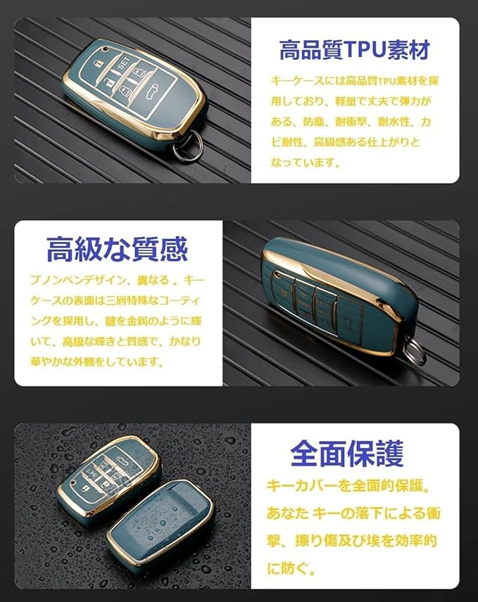 【高品質TPU素材】アルファード キーケースには高品質TPU素材を採用しており、軽量で丈夫で弾力がある、防塵、耐衝撃、耐水性、高級感ある仕上がりとなっています。 自動車の鍵を腐食や破壊からしっかり守られ、鍵の形状を保つことができる。 万が一、鍵が落ちた時、キーケースも鍵が壊されないように保護することができて、着地緩衝の効果があります。