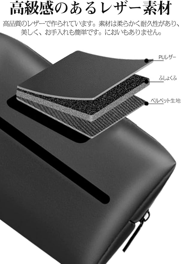【使い勝手が良い】このティッシュケースは調整可能なバンドが付属し、工具不要でアームレストに縦置きしてバンドで簡単に固定できます。簡単にティッシュを取れるため、便利です。また、ジュースやお菓子で汚れてもカバーはウェットティッシュで簡単に拭き取れます。