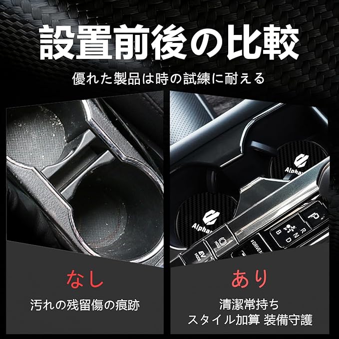 【対応車種】アルファード 専用設計、アルファードモデルに対応。に開発されたカップホルダーマットは、車内空間と自然に調和し、一体感を生み出します。