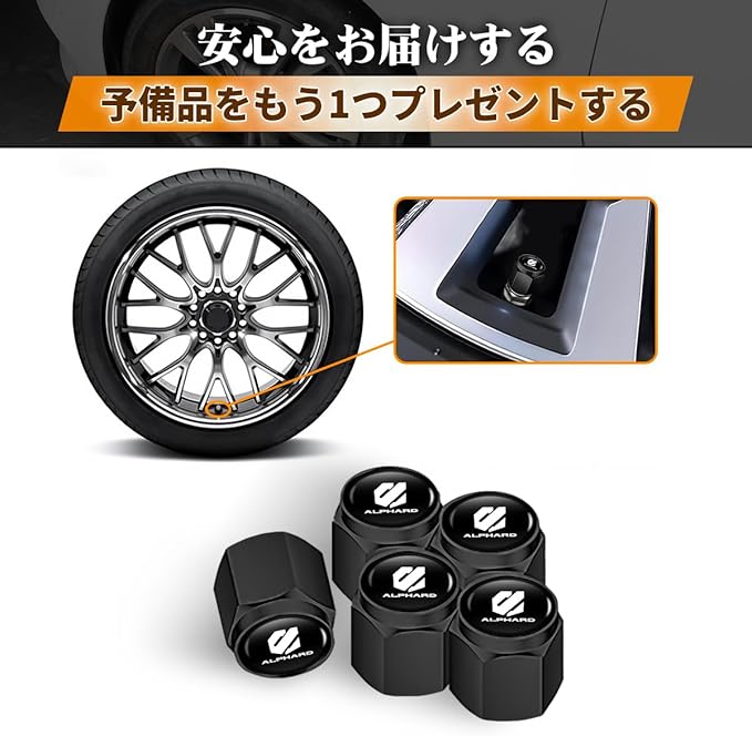【専用】アルファード 専用エアバルブキャップ 車 タイヤエアバルブ 対応Alphard 40系 30系 20系 六角形 円柱形 盗難防止 防錆 防水 エア漏れ防止 タイヤバルブ交換用 カー 外装 パーツ (ブラック)