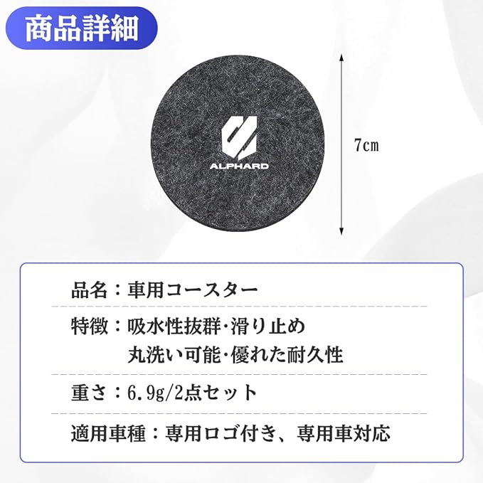アルファード 適用 車 ドリンクホルダー コースター 吸水 滑り止め アルファード 20系 30系 40系 対応 ドリンクホルダー保護 車載 コップマット 振動防止 ノイズ低減 カー 耐久性 無臭 用品 丸型 2枚入り(アルファード 適用)
