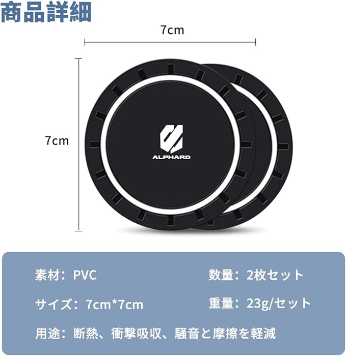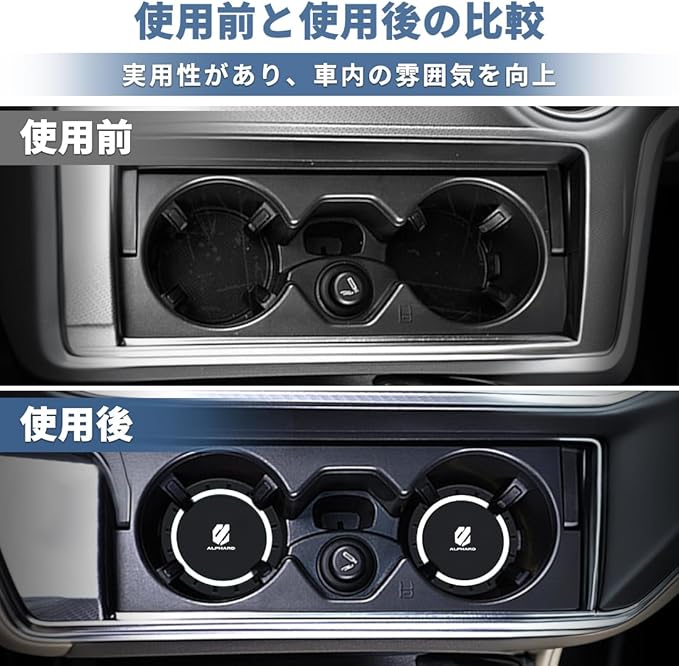 【専用ロゴ付き】このシリコン カー ウォーター コースターには ALPHARD 専用ロゴ付いており、車を装飾するだけでなく、車内の雰囲気を高めることができます。実用性と美しさを兼ね備えたこの製品は、車内を飾りたい方にお勧めです。適用車種:トヨタ アルファード ALPHARD 20 30 40 系 に適用します。