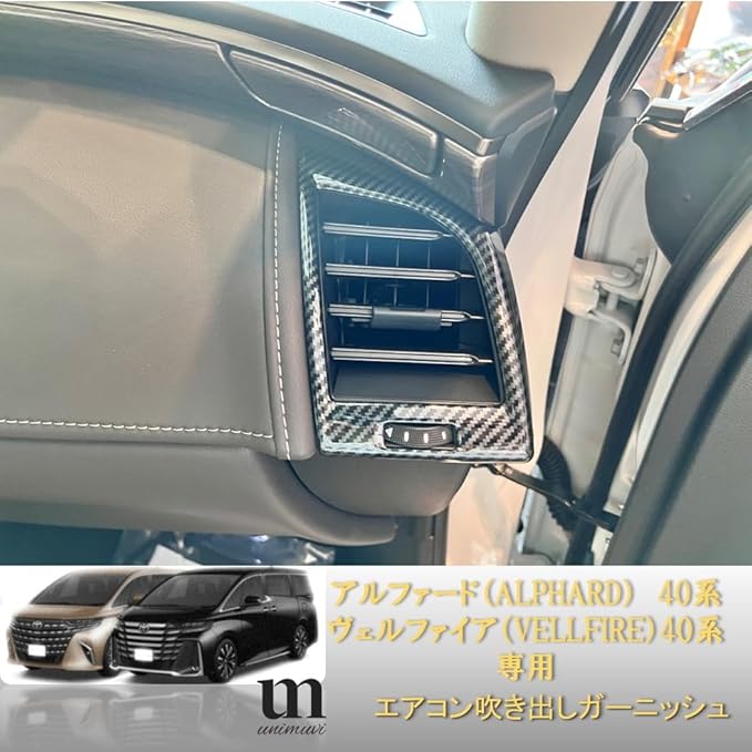 【40系アルファード/ヴェルファイア専用】エアコン吹き出し口 ガーニッシュ ABS樹脂製 <<シルバー>>(シルバー/ブラック/カーボン) インテリアパネル カスタムパーツ_ユニムビ