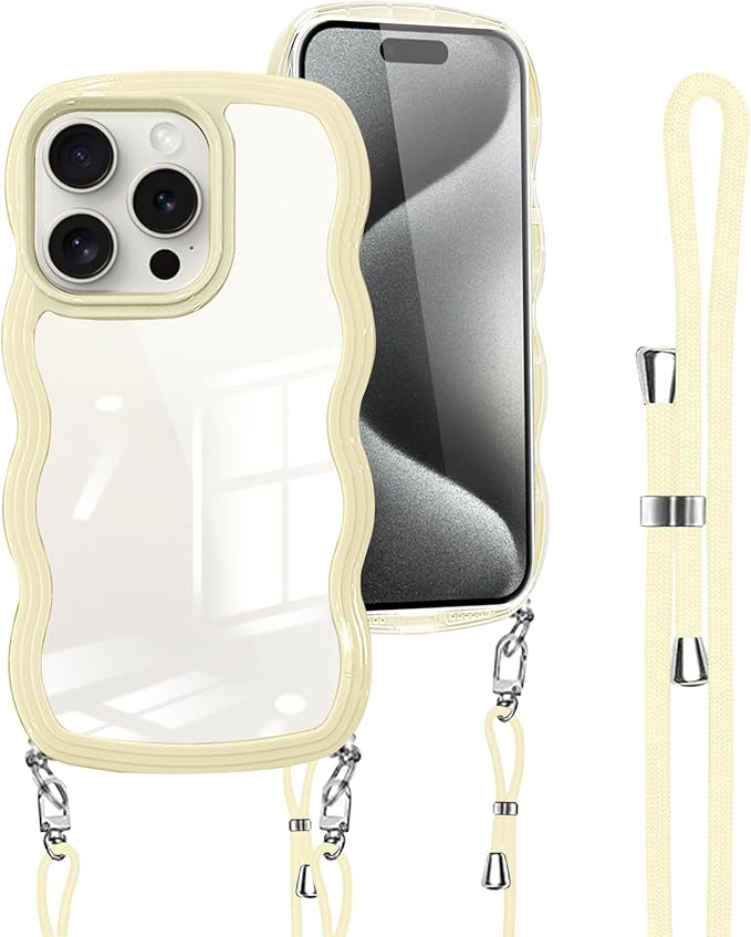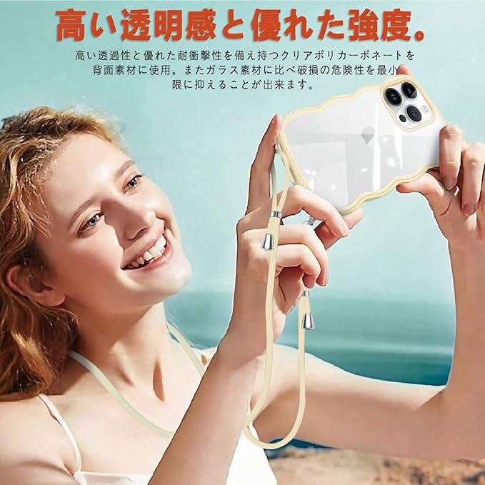 iPhone 15 Pro Max ケース クリア ショルダー iphone15promax カバー 首掛け 肩がけ 斜めかけ 紐付き ストラップ付き ケース 韓国 可愛い かわいい 透明 薄型 軽量 耐衝撃 シリコン TPU バンパー アイフォン 15promax スマホケース イエロー