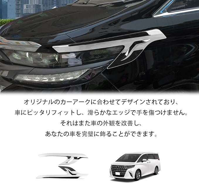 新型アルファード40系ヴェルファイア40系に対応フロントヘッドライト装飾 パーツヘッドライトアイブロウモール ドレスアップアクセサリーABS 鏡面仕上げ