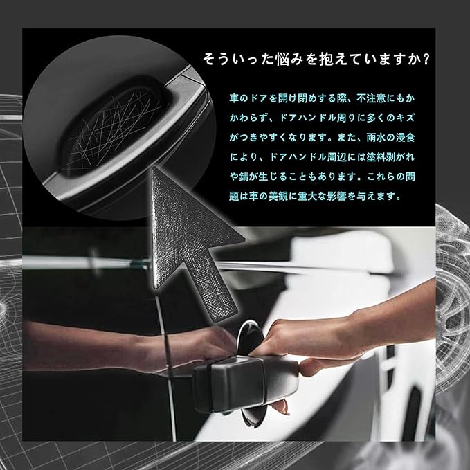 全面的な保護: この製品は車のドアカップとドアハンドルの保護フィルムセットで、ドアハンドル全体を包括的に保護し、車のドアの開閉による傷や汚れ、その他の潜在的な損傷から効果的に防ぎます。車のペイントを美しく保ちます。