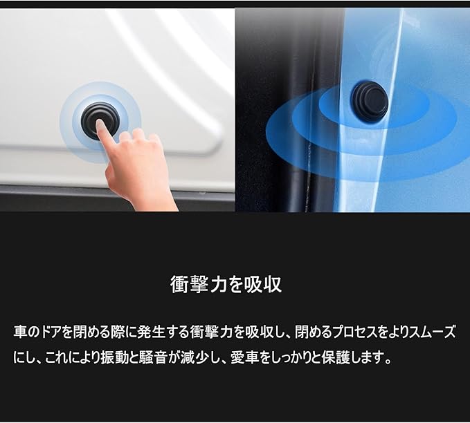 安装前:車のドアを閉める際に振動と騒音が発生し、その衝撃が車の塗装に傷を引き起こします。安装后:車のドアを閉める際に発生する衝撃力を吸収し、 閉めるプロセスをよりスムーズにし、これにより振動と騒音が減少し、愛車をしっかりと保護します。
