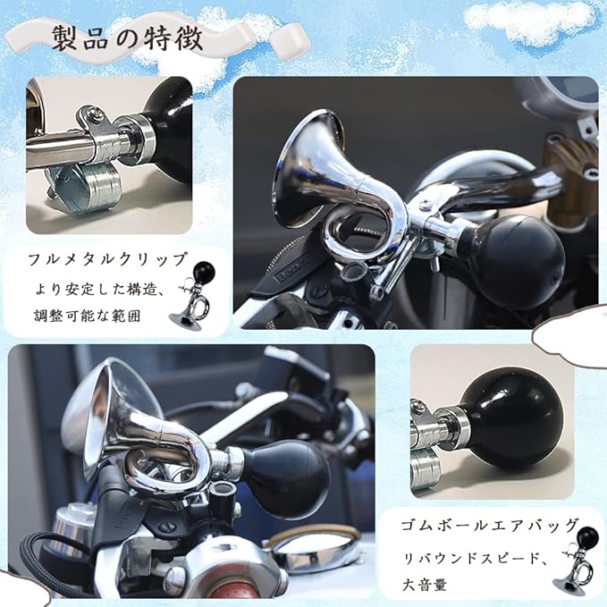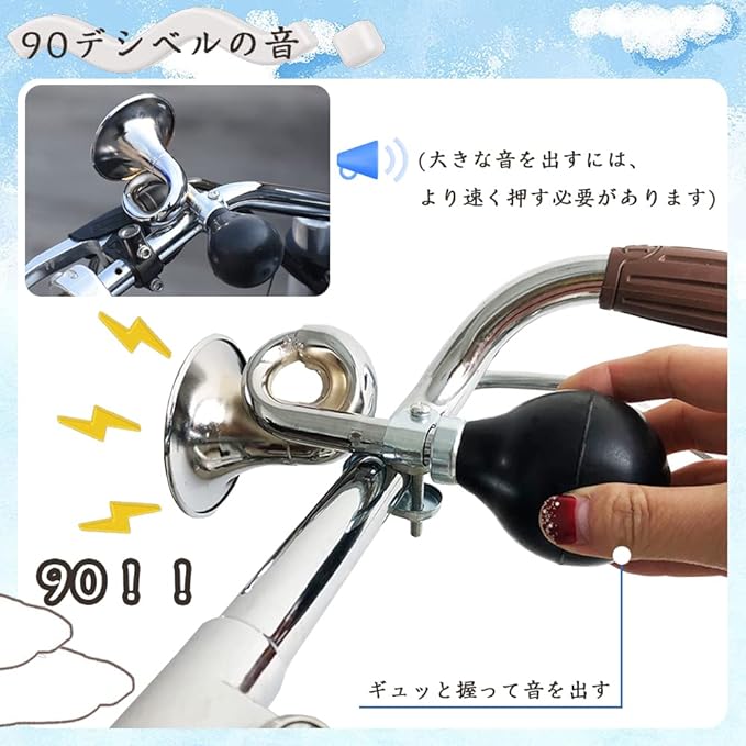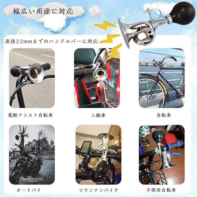 大きな音とクリアなサウンドで、歩行者や車両にあなたの存在を知らせ、潜在的な事故を回避するのに役立ちます。マウンテンバイクやロードバイクなど、あらゆるタイプの自転車に対応し、あらゆるレベルのサイクリング愛好家に最適なホーンです。