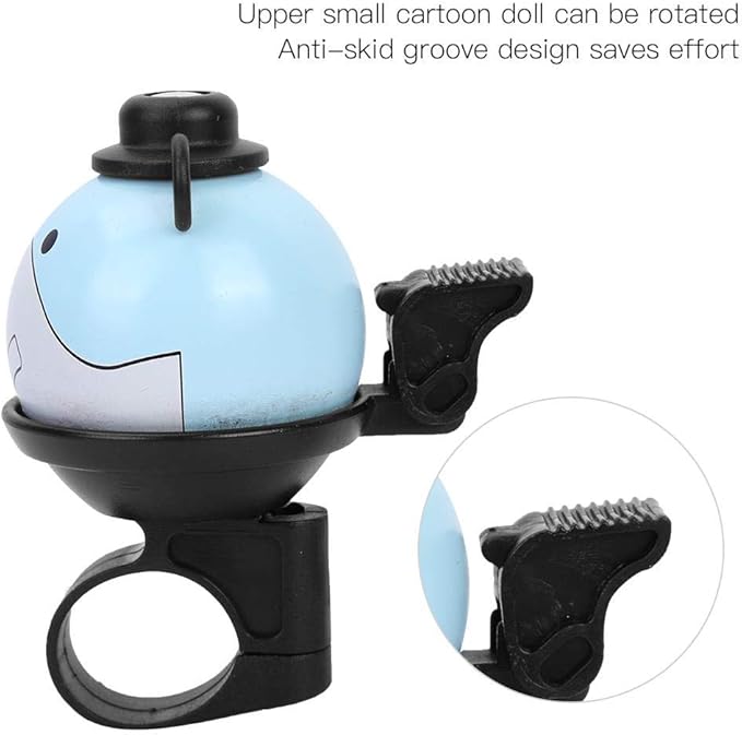上部の小さな漫画の人形は回転でき、方向を自由に調整できます。 滑り止め溝の設計により、労力が節約され、取り付けが簡単です。 クリアで大きな音、他の人の注意を引き付けやすく、サイクリング中の安全性を高めます。 22.2mmのハンドルバー直径に適しており、ほとんどのハンドルバーに最適です。 子供用自転車に最適です。