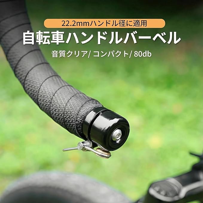 自転車 ベル ロードバイク 自転車ベル バーエンドキャップ式 隠れ式 軽量 大音量 爽やかな音色 銅合金製 防水 錆びにくい ロード グラベルロード ハンドル直径22.2mm対応