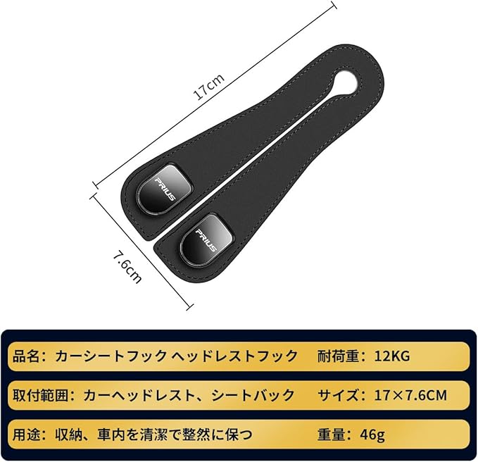 【高品質】プリウス シートフックは、上質なPUレザーで作られており、触り心地が滑らかで柔らかいです。便利なデザインを採用し、先端と末端には頑丈な金属板が内蔵されているため、耐久性に優れています。使用中にロープのようにねじれることがなく、非常に使いやすいです。対応 Prius 60系 50系 40系 30系 20系。