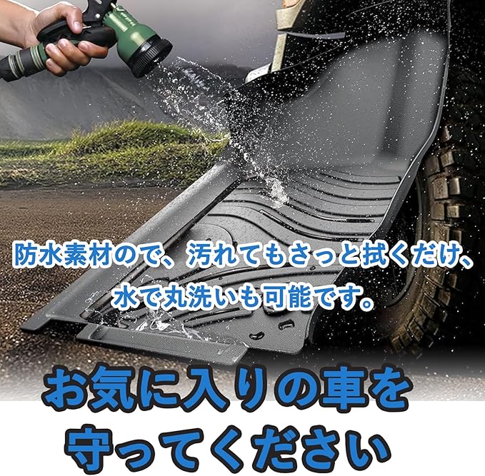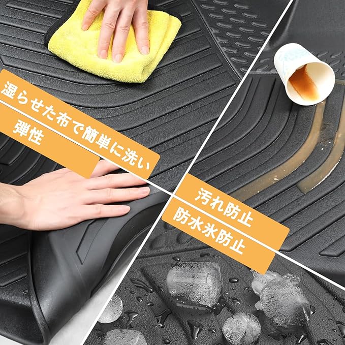 【防水、耐汚れ】耐摩耗性と耐汚性にも大変優れて、お車の床を保護し、外での旅行にも最適です。防水仕様なので、汚れても水で簡単に洗うことができる、便利で楽です。特に水遊びで水に濡れたものやキャンプで汚れた物を積んでもマットから汚れが出にくい立体形状で、ご愛車を汚しにくい製品です。マットが汚れても水洗いOK。お手入れ簡単です。