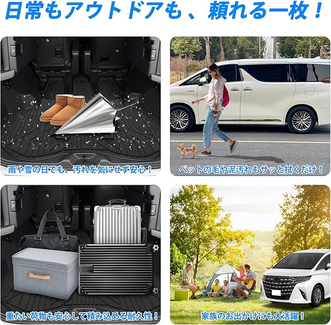 トヨタ アルファード 40系 ヴェルファイア 3D ラゲッジマット 7人乗り対応 ALPHARD VELLFIRE 40系 2023年6月~ AGH4#W AAHH4#W AAHP45W 専用設計 トランクマット カーマット TPE 滑り止め 防水 キズ&汚れ防止 耐摩擦 取付簡単 お手入れ アクセサリー カスタムパーツ 1枚セット