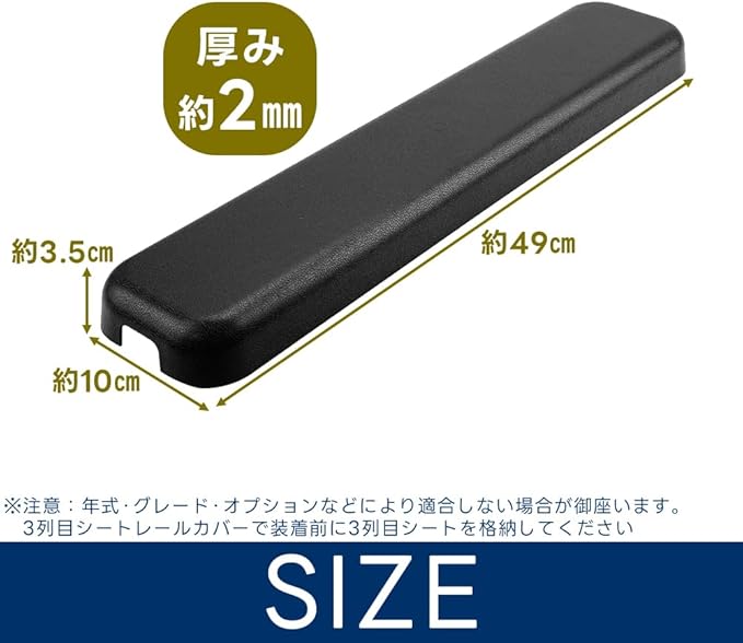 【セット内容】シートレールカバー 2点 【サイズ(約)】49cm 10cm 3.5cm 【カラー】ブラック 【材質】ABS 【適合車種】新型 アルファード40系/ヴェルファイア40系 ※ご購入前に必ず適合車種をご確認ください。