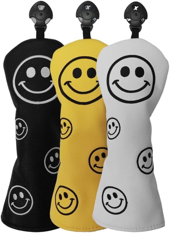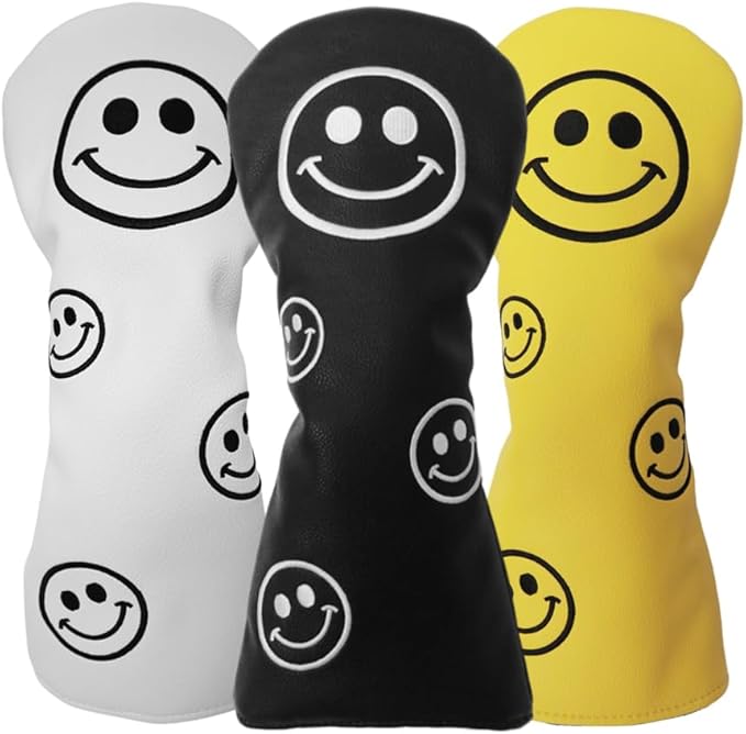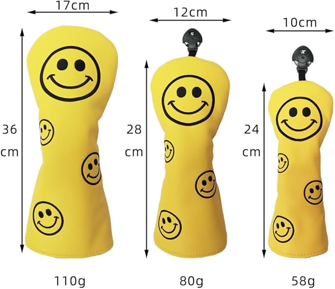 ゴルフヘッドカバー ドライバー用 440cc 460cc ウッド用 ユーティリティ UT用 カバー スマイル 黒 白 黄 単品 3セット 4セット