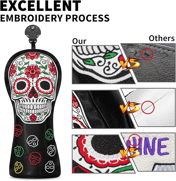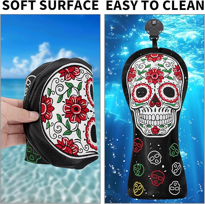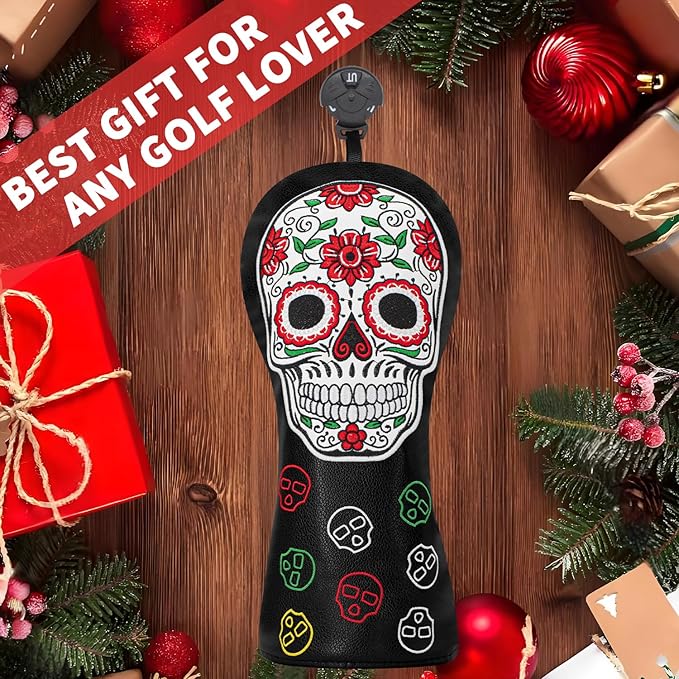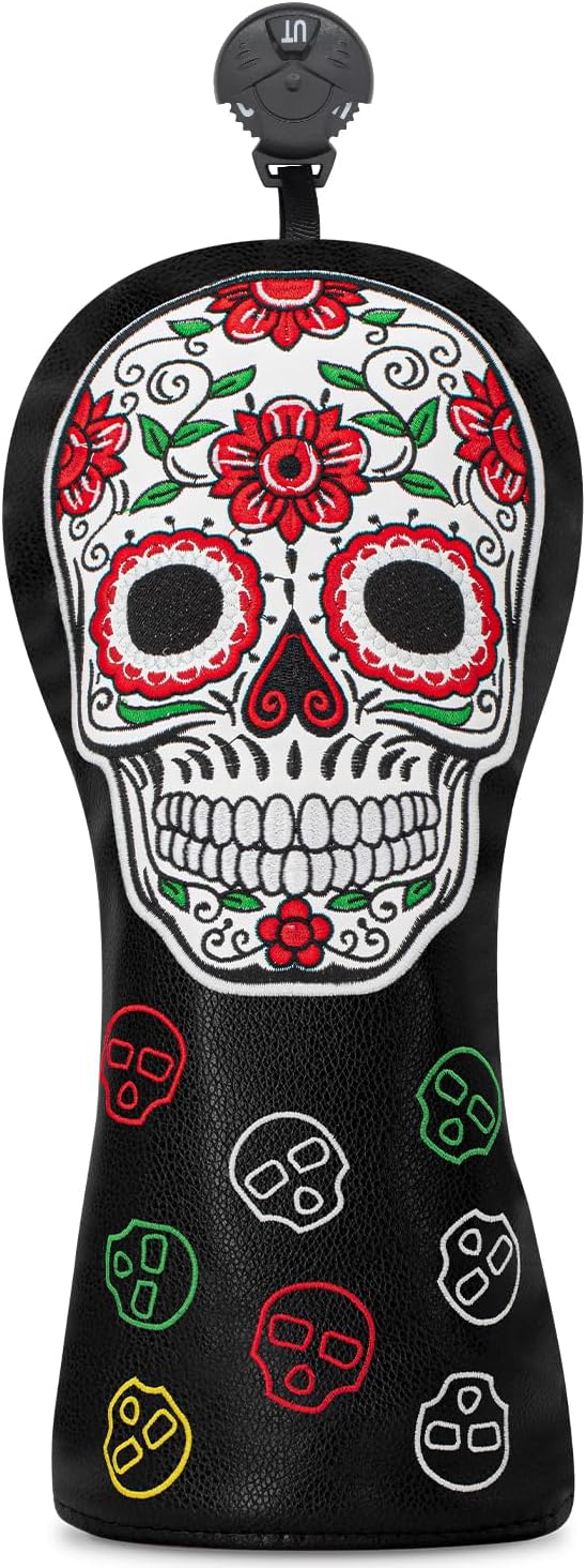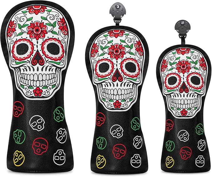 ゴルフヘッドカバー ゴルフクラブ レッドフラワー スカルデザイン ゴルフカバー PUヘッドカバーセット ドライバーフェアウェイウッドハイブリッドユーティリティウッズアイアンウェッジヘッドカバーにフィット。