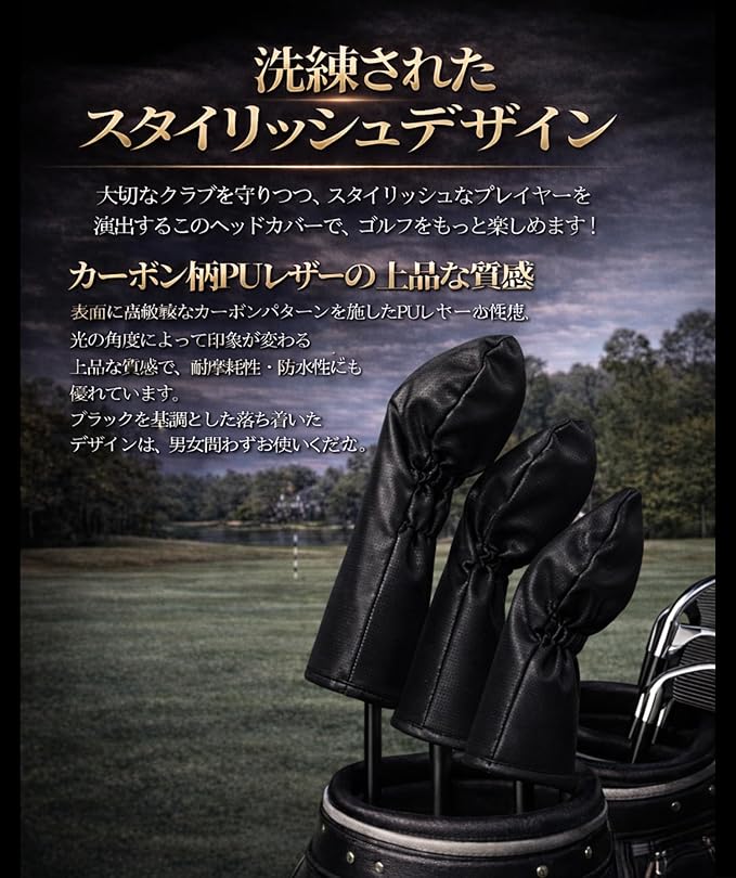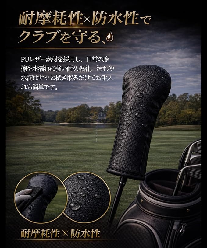 【PUレザー素材で長持ち】 ✨ 耐摩耗性と防水性に優れたPUレザーを採用。汚れや水分も簡単に拭き取れるため、大切なクラブヘッドを清潔に保てます。