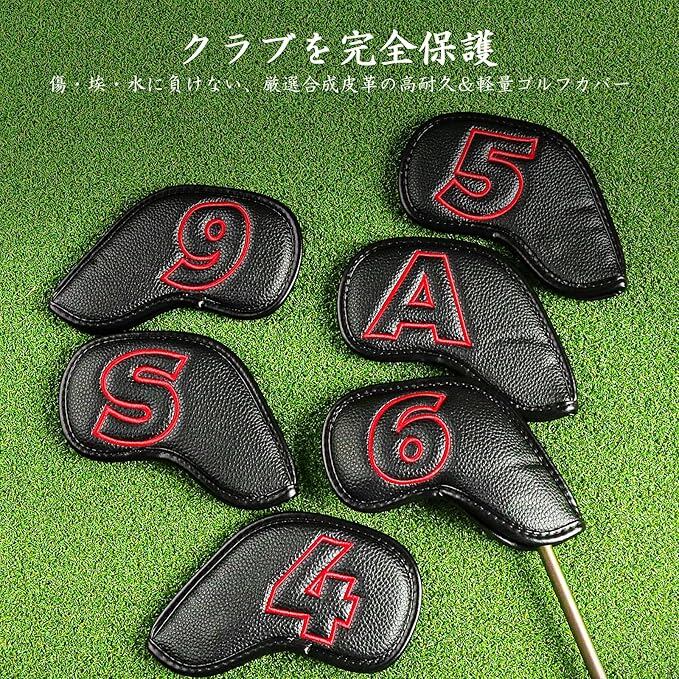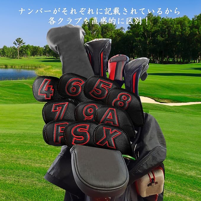 ゴルフアイアンカバー 10枚セット マグネット式開閉 ゴルフヘッドカバー ウェッジカバー 高級PUレザー 軽量 耐久性・撥水性・防塵性・耐摩耗 両面番号刺繍 究極のヘッド保護カバー LT-011