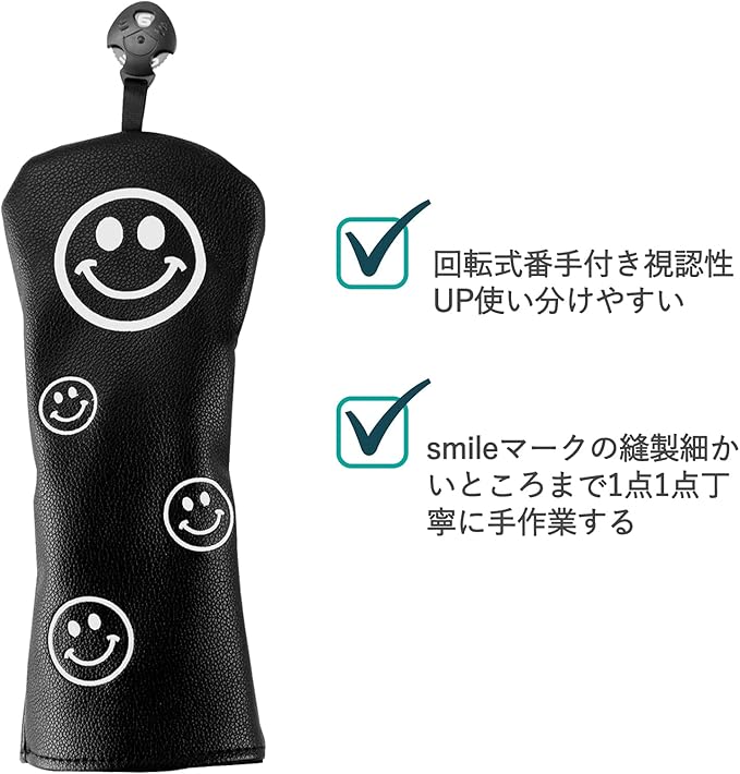 かわいいスマイルデザイン、高品質のPUレザーで、しっかりクラブヘッドを保護でき、防水タイプ、3色