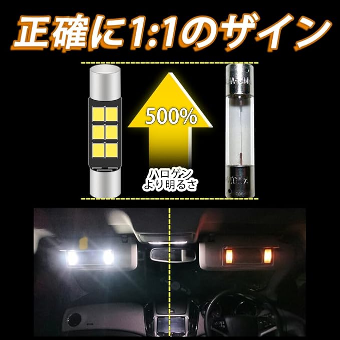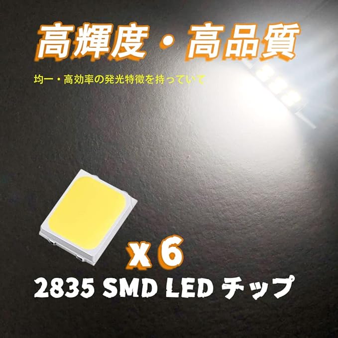 【高輝度】高輝度高拡散 6連SMD2835 LEDチップ搭載したバニティランプ特殊球。 サンバイザーのミラー部分のバニティランプ(バイザーランプ)に多く採用されている