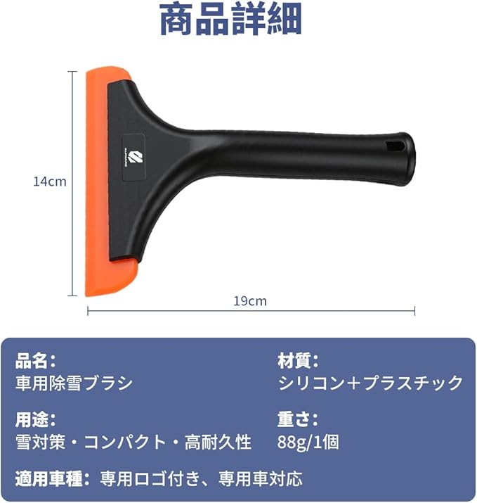 【コンパクト 収納しやすい】この車用除雪ブラシは、長さ19cm、幅14cmというコンパクトなサイズで、車のドアエッジやグローブボックスなどに直接収納でき、場所を取ることがありません。日常的な収納に全く負担をかけません。下部には穴あけ設計が施されており、車内にロープで吊るすことができるため、紛失を防ぐこともできます。