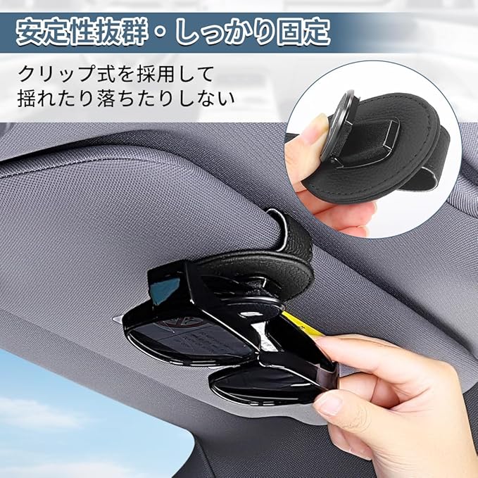 【安定性抜群 取り出せやすい】この車載サングラスホルダーはクリップ式を採用しており、非常に安定していて、眼鏡を入れても揺れたり落ちたりすることがありません。眼鏡を挟む部分は金属製で、一般的な眼鏡ホルダーよりも耐久性が高いです。使いやすくて2秒で素早く取り出せます。車内に眼鏡を置く場所がないという悩みを解消できます。