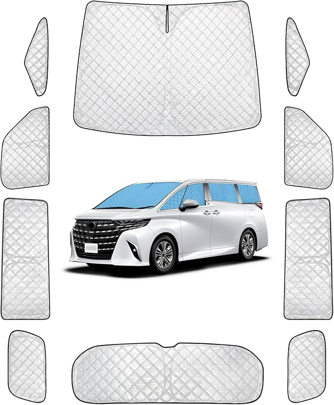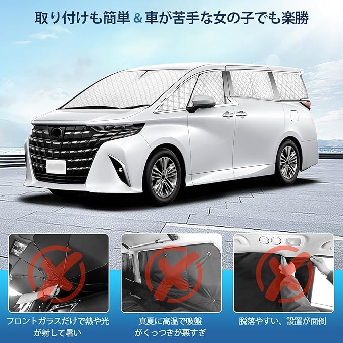 【◆適合車種◆】:トヨタ アルファード 40系(ALPHARD 40系)。年式:2023年6月~現行((令和5年6月~現行)。.※購入する前、形状、年式とモデルを確認してください。。車種専用設計で抜群の装着感・隙間なくフイット 全ての窓に運転席と助手席も遮光できると思います。友達または親にもプレゼントすることにおススメです。真夏用フロントサンシェードで、真夏の太陽の照り付けから愛車を守りましょう。