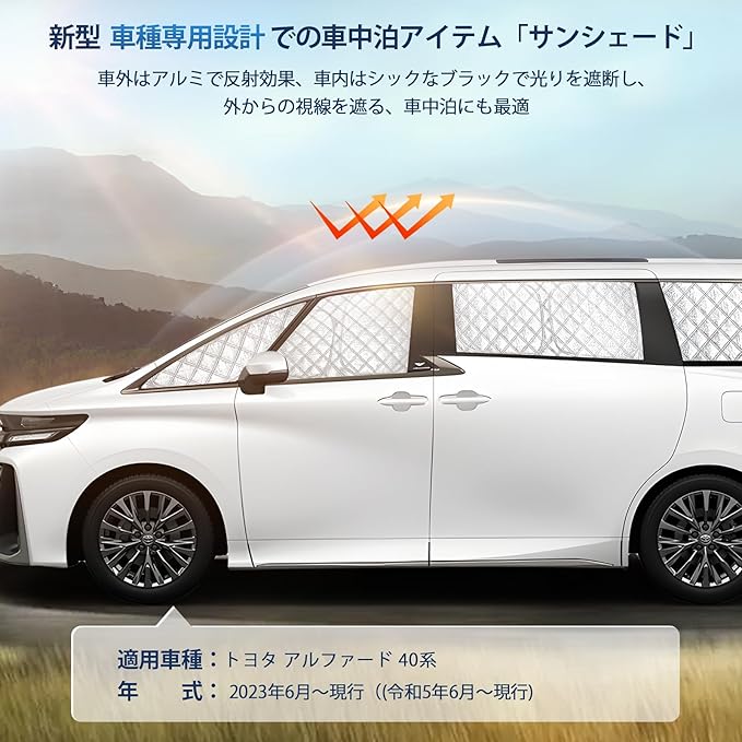 アルファード 40系 専用サンシェード 全窓対応 UVカット ALPHARD 40 車用 遮光シェード 車窓日よけ 車中泊グッズ はめ込み式 プライバシー確保 車用カーテン 盗難防止アウトドア 仮眠 車内の暑さ対策 カーフィルム カーシェード サイド カーテン セット
