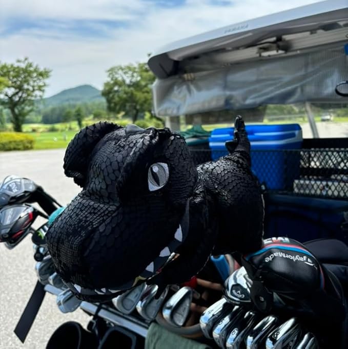 【ユニークなデザイン】DinofactoryのT-Rexゴルフヘッドカバーは、楽しく目を引く恐竜のデザインが特徴で、コースでゴルファーを目立たせます。