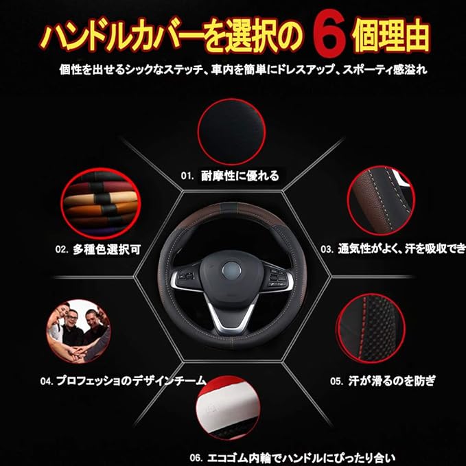 PGMARO ハンドルカバー ステアリングカバー 通気 滑り防止 軽自動車 レクサス GS LS FJクルーザー アルファード/ヴェルファイア 20系 ヴォクシー 60系 ハイエース ベンツAクラス ふそう/UD 2t 小型トラックなど対応 (A-コーヒー色, 40cm)