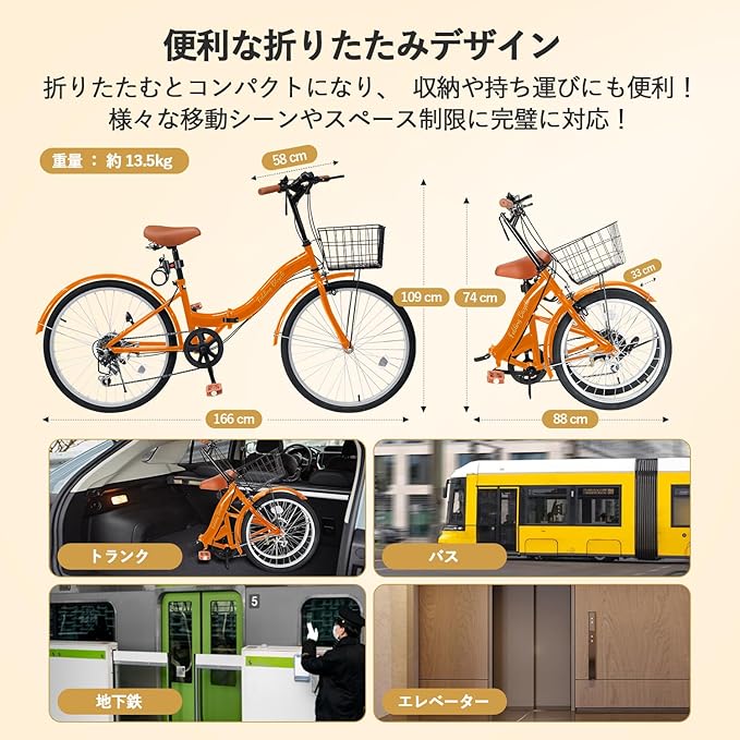 【折り畳み可能・持ち運びに便利】折り畳み自転車は、折り畳み可能なデザインを採用し、わずか30秒で楽に折りたためます。折り畳んだ後はコンパクトになり、玄関や車のトランク、オフィスの隅などに簡単に収納できます。都市部の狭いスペースでの収納問題を解決し、柔軟な移動を実現します。