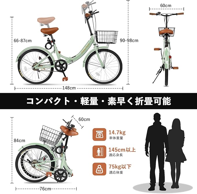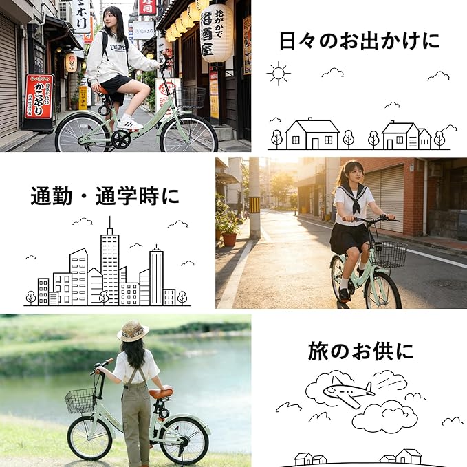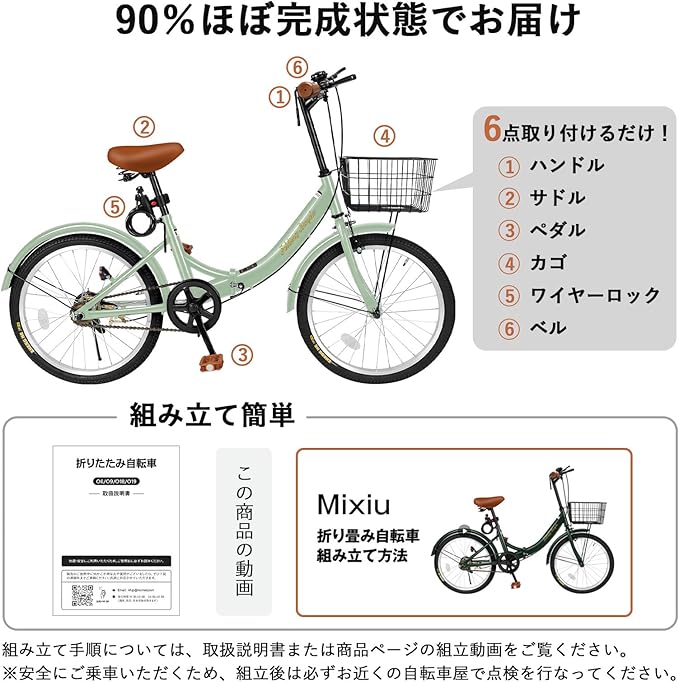 【安心のアフターサービス】折りたたみ自転車はワイヤーロック、ベル、カゴなどを同梱しております。1年保証付きで、ご連絡いただければ誠心誠意対応させていただきます。ご注意:自転車は大型商品のため、Amazonの返品受付センターで返品手続きをお受けできない場合がございます。その際は取扱説明書に記載されている連絡先までご連絡くださいませ。