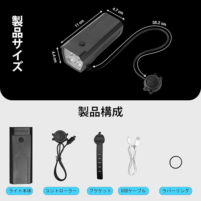 自転車ライトのサイズ:11*4.7*4.4cm