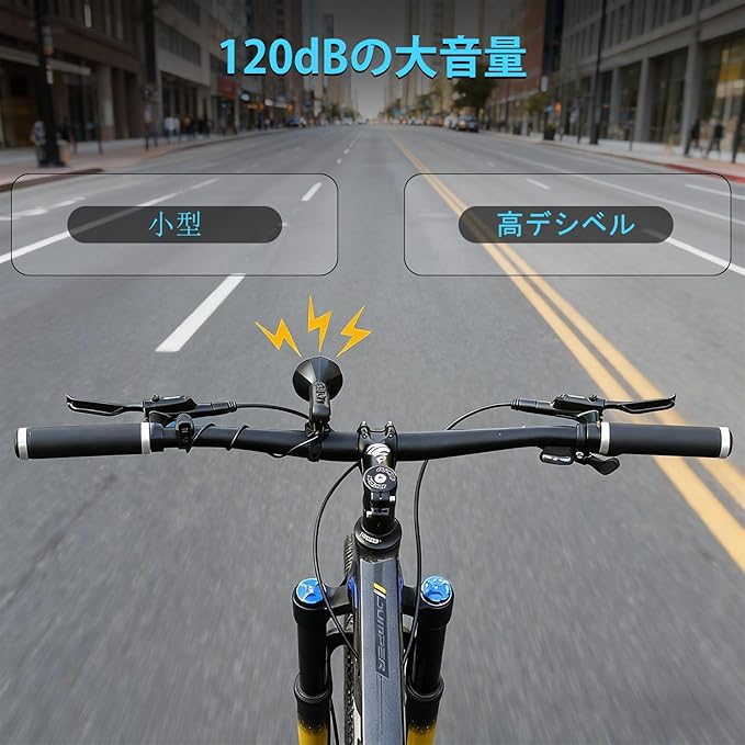 【大音量連続吹鳴が可能】120dBの大音量自転車用ホーン。通行人に注意を促すのに十分な音量で、交通安全意識の向上にも寄与できます。