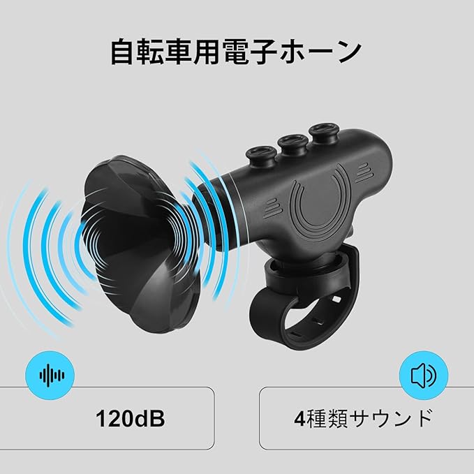 Merdia 自転車ベル ホーン サイクルベル USB充電式 大音量 120dB ロードバイク警音器 4種類サウンド 防水IPX4 簡単取り付け