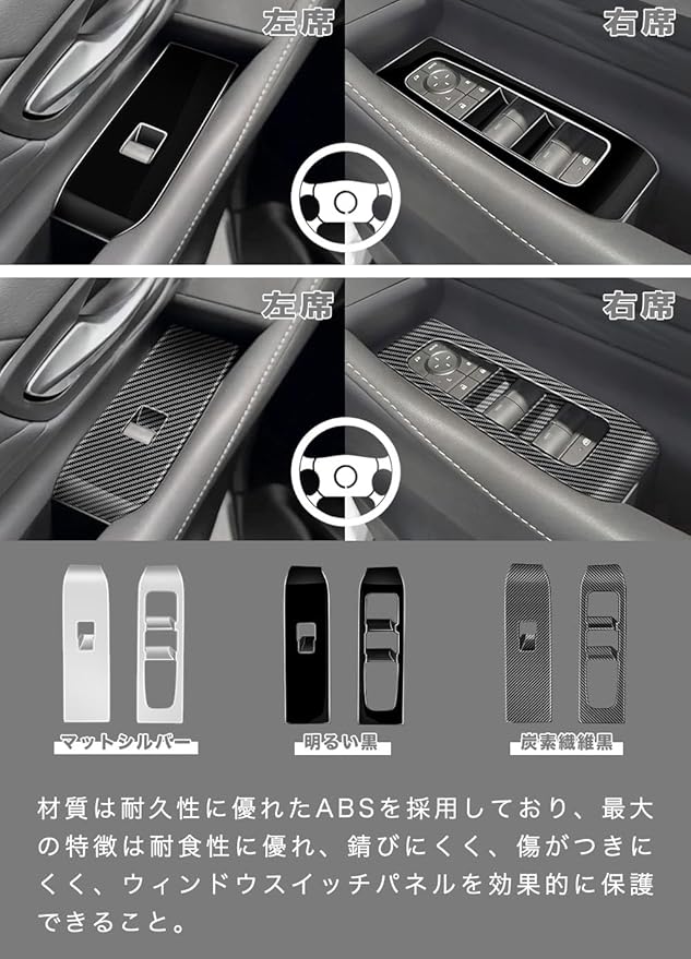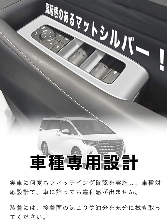 HUDIY(フーディ)新型 アルファード ヴェルファイア 40系 ウィンドウスイッチパネル ドア ウィンドウスイッチカバー AAHH40W AAHH45W 傷防止 保護 ドレスアップ アクセント 車種専用設計 ABS素材 カスタム パーツ ドレスアップ (シルバー)