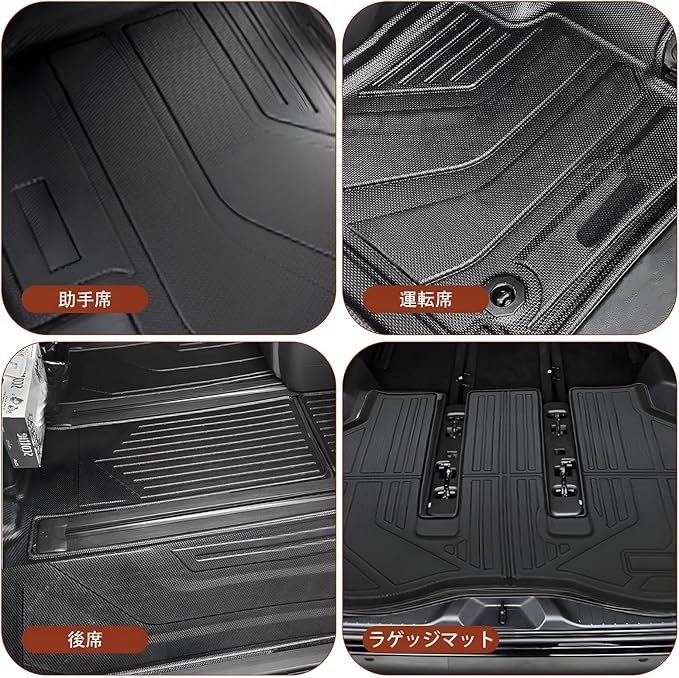 【適合車種】トヨタ アルファード/ ヴェルファイア40系AAHH40W/AAHH45W/AGH40W/AGH45W/TAHA40W/TAHA45W(ガソリン/ハイブリッド共通)専用で、年式:R5.6〜現行。 運転席用1件、助手席用1件、2列目用1件、3列目用:3件、ラゲッジマット用1件が含まれています。合計7枚セット。購入する前、形状、年式とモデルを確認してください。