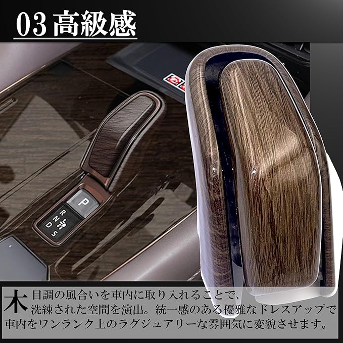 【究極のラグジュアリー感をアルファード&ヴェルファイアに!】新型アルファードとヴェルファイア40系専用の木目調シフトパネルカバー&シフトノブカバーセットで、内装を極上の豪華空間に。美しい木目調デザインが、ワンランク上のプレミアム感を実現。まるで高級ラウンジのような車内空間を演出します。
