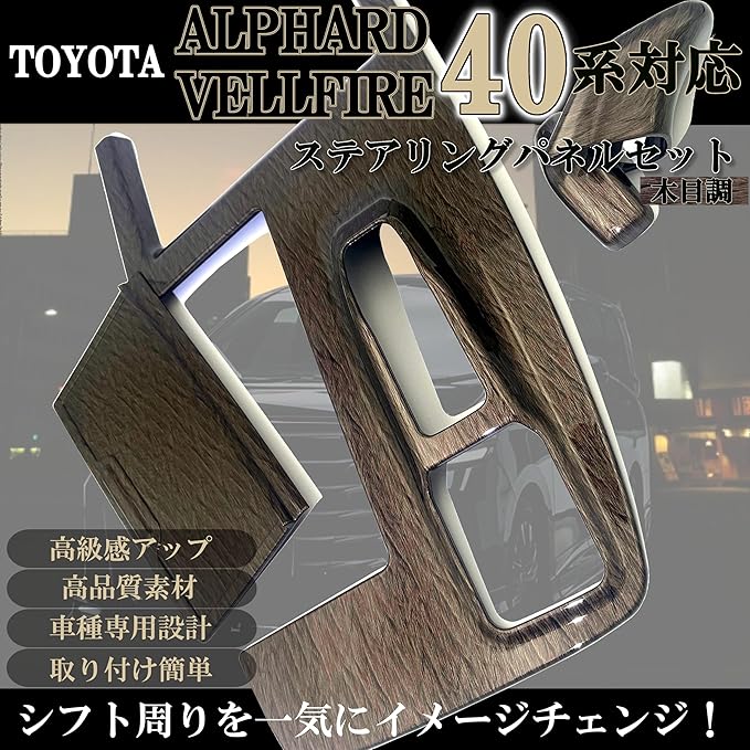 Flatland 新型 アルファード 40系 ヴェルファイア 40 系 パーツ アクセサリー 内装 カスタム シフトパネルカバー シフトノブ カバー セット (木目調)
