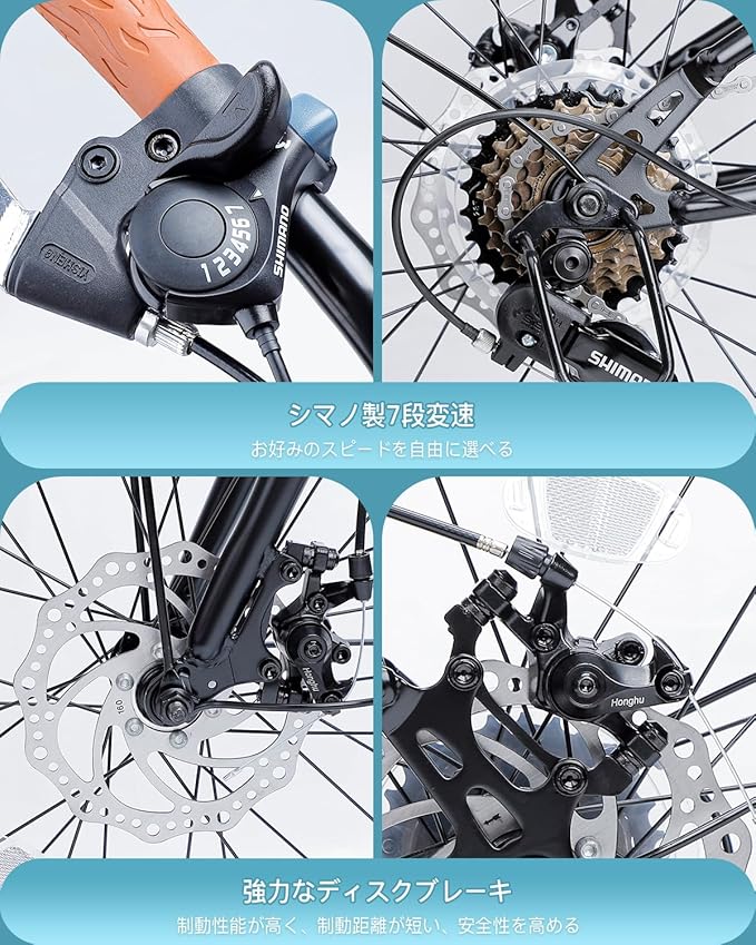 ✅【シマノ7段変速】市場では6段変速自転車が一般的だが、これは7段変速自転車で、より速く乗ることができるだけでなく、坂道を走るときにより力を省くことができます。