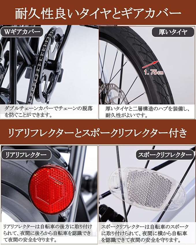 【カゴ付きで実用性に富む】金属製カゴが付いたので、通勤、通学でも、買い物に行っても、かばんなど収納できて両手を解放します。また、前後泥除けを装備しているので、雨の日にしろ、冬の日にしろ、泥の心配もいらなくなります。