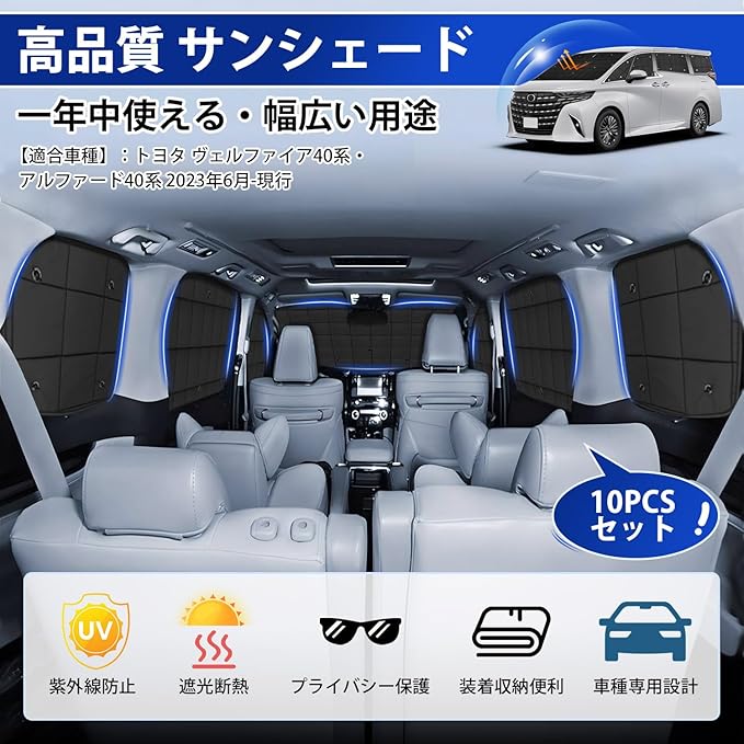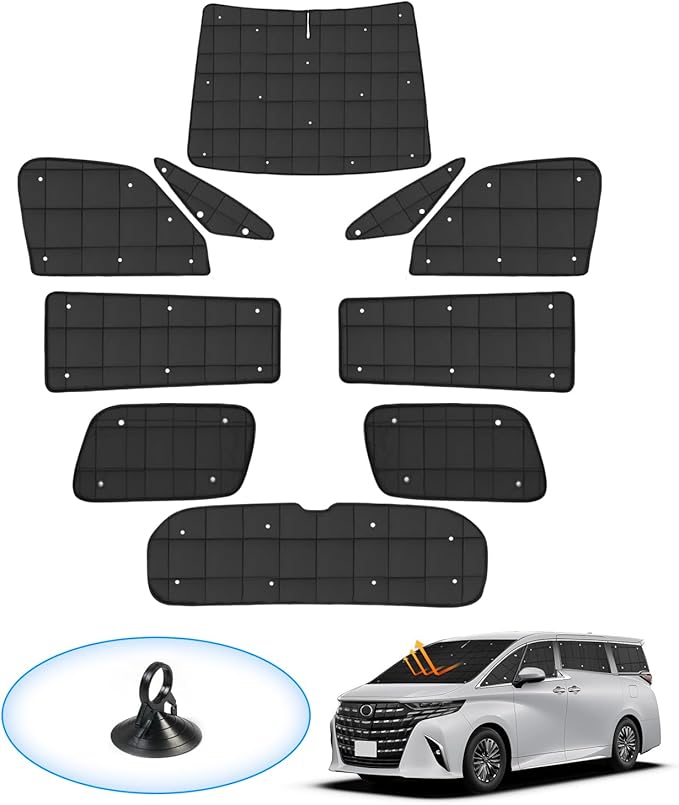 AUTO SPEC トヨタに適用 アルファード 40系 サンシェード 1台分 格子状 吸盤タイプ ヴェルファイア ALPHARD VELLFIRE 2023年6月-現行 マルチサンシェード フルセット 折り畳み式 遮光シェード プライバシー保護 盗難防止対策 日除け 紫外線防止 遮光断熱 車中泊 アウトドア 収納便利 メーカー直営 収納袋付き 黒色 10PCSセット