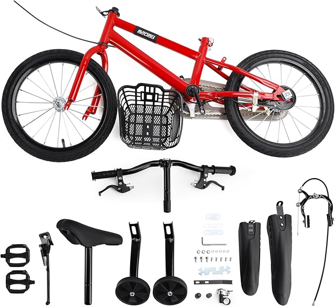 Artudatech 子供用自転車 16インチ 自転車 子供 キッズバイク 高炭素鋼フレーム 16インチ 女の子 男の子 補助輪 低学年 ぬいぐるみ座席 人形用シート 取外し補助輪 コマ付き インストールツール 多色 プレゼント お祝い 赤色