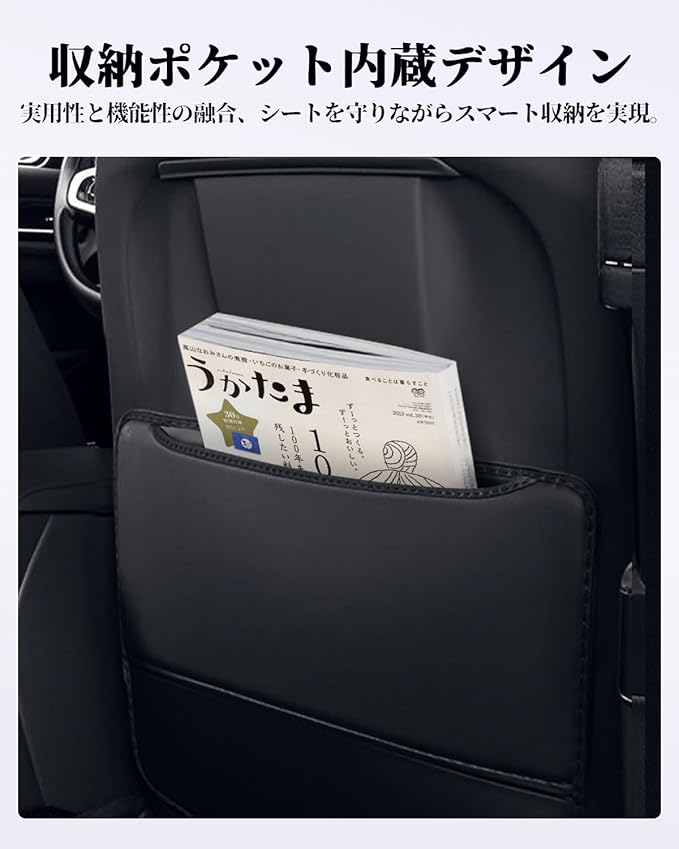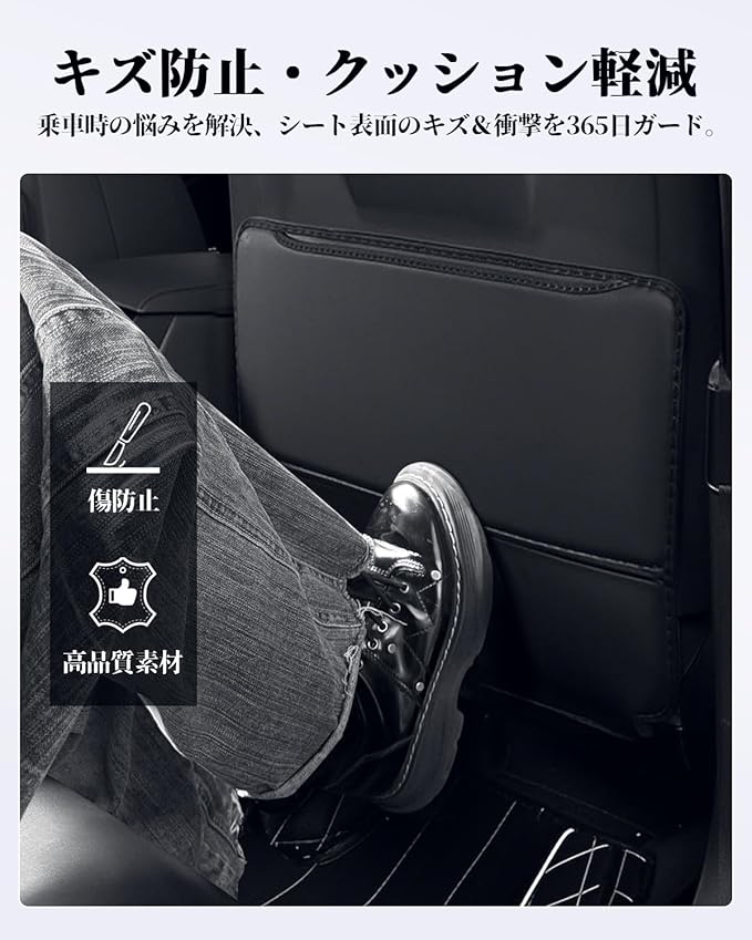 【汚れ防止&収納機能】後部座席のシートバックに取り付けるキックガードで、靴跡や汚れからシートを守ります。特にお子様や乗客がシートを蹴ってしまうことが多い場所に最適!さらに、便利な収納ポケット付きで、携帯電話、タブレット、充電器などの小物をすっきり収納可能。車内が整頓され、より快適に。
