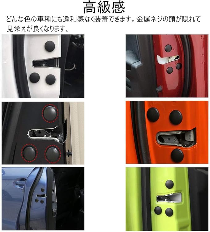 車のドア用ネジカバーは、露出したビスやネジ穴をしっかりとカバーし、錆や水の侵入を防止します。