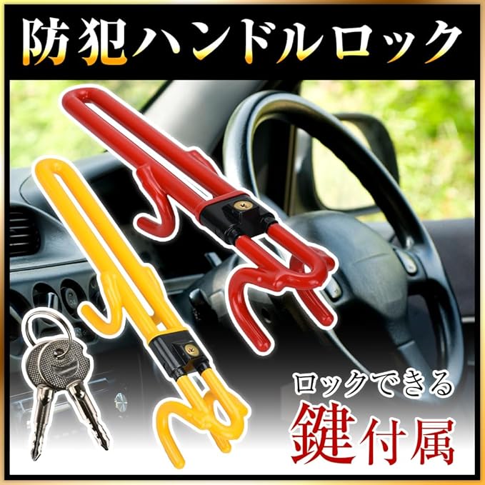 【セット内容】車用ハンドルロック 1点 鍵 2本 【サイズ(約)】全長:48cm~67cm 【カラー】イエロー・レッド ※お好きなカラーをお選びいただけます。【材質】鉄