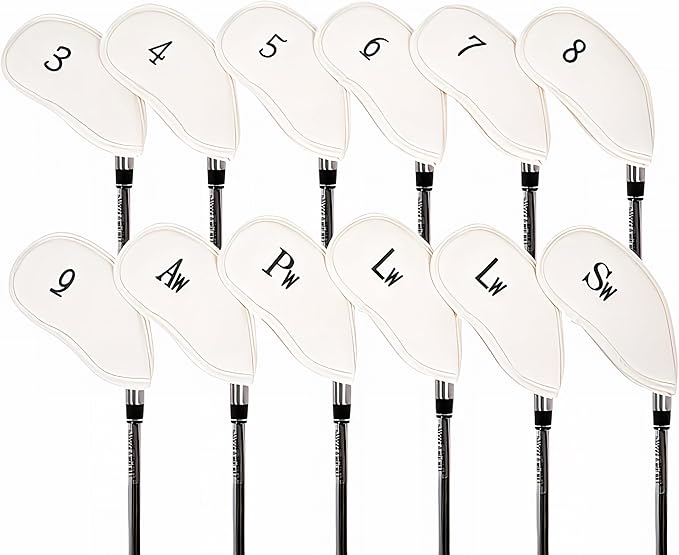 ゴルフ アイアンカバー ヘッドカバー 12点セット PUレザー 番手表示 薄型 収納便利