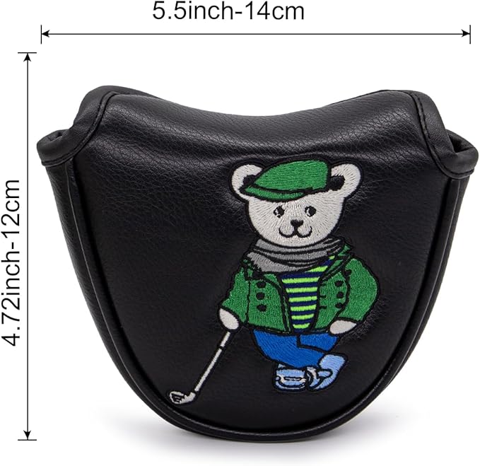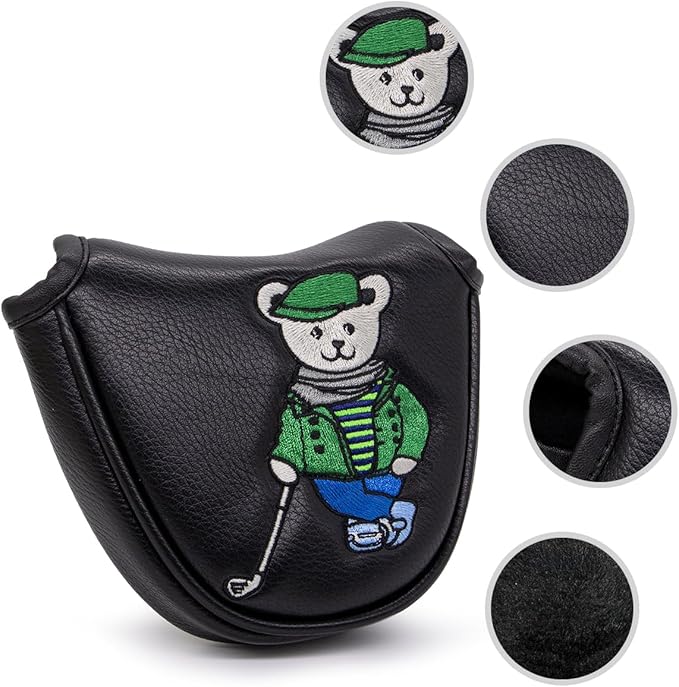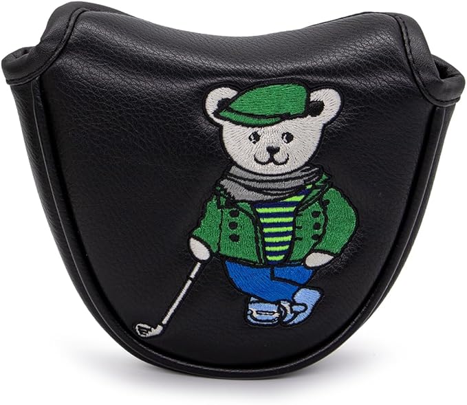 ゴルフパターカバー パターヘッドカバー ブレードパターカバー ゴルフクラブヘッドカバー ゴルフヘッドカバー PUレザー製 おしゃれ クマ刺繍 ブラック ゴルフパターヘッドカバー マグネット付き、全ブランドに適合